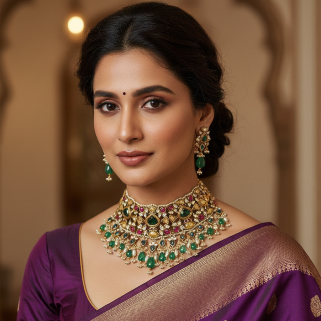 Welcoming in the spring season with an enchanting Emerald & Gold necklace with earrings.